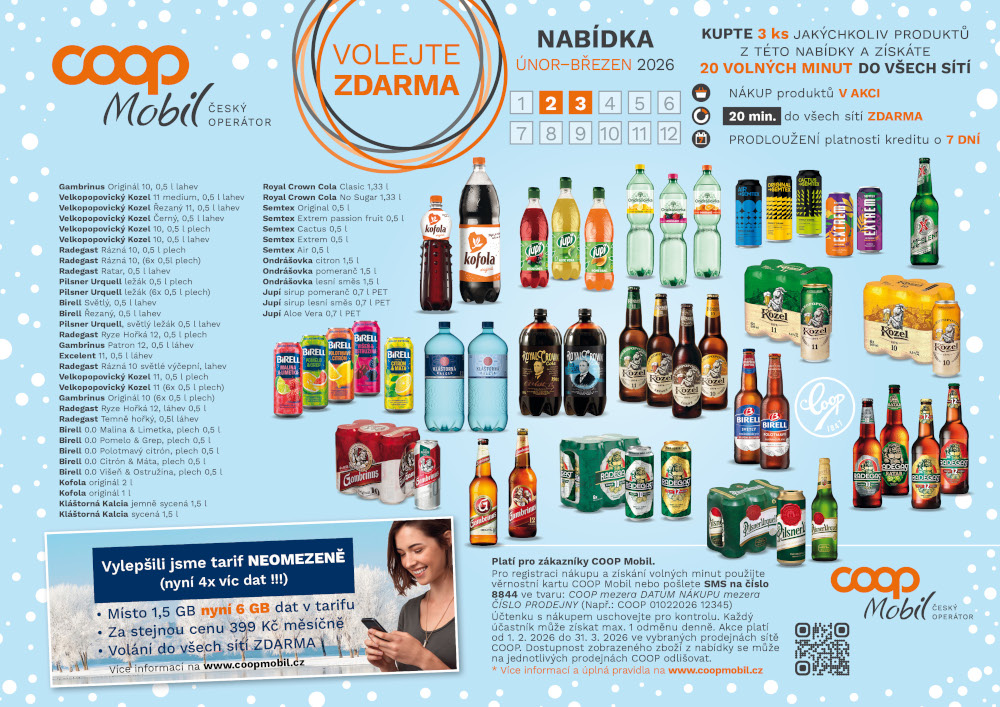 Každé 2 měsíce je v nabídce skupina výrobků, které lze libovolně kombinovat. Za nákup alespoň 3 vybraných produktů v akci nadělujeme 20 volných minut do všech sítí.